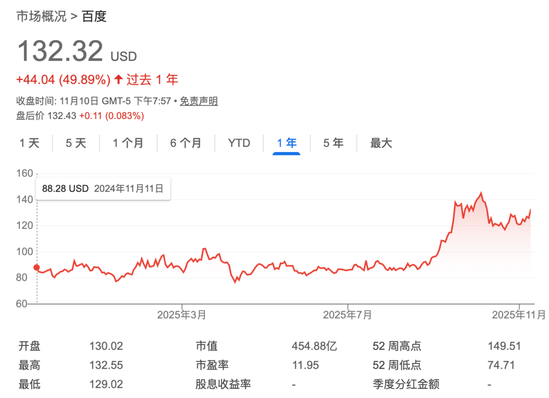 今年前三季度,百度美股累计上涨超过80%,大幅跑赢同期纳斯达克指数及绝大多数中概股。