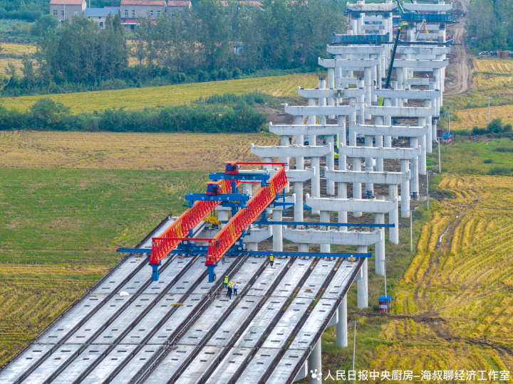 图为建设中的武汉都市圈环线高速孝感南段QHXGNTJ-1标段桥。该高速建成后,将推动长江中游城市群协同发展。胡学军摄(人民视觉)