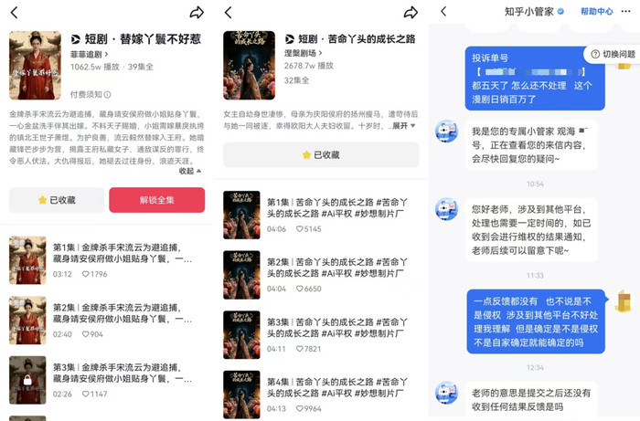 以知乎独家爆款小说《阮阮》侵权案为例,这部仅1.5万字的作品被黑产盯上后,直接被大模型“融梗”洗稿,迅速做成短剧在各大平台投流吸金。