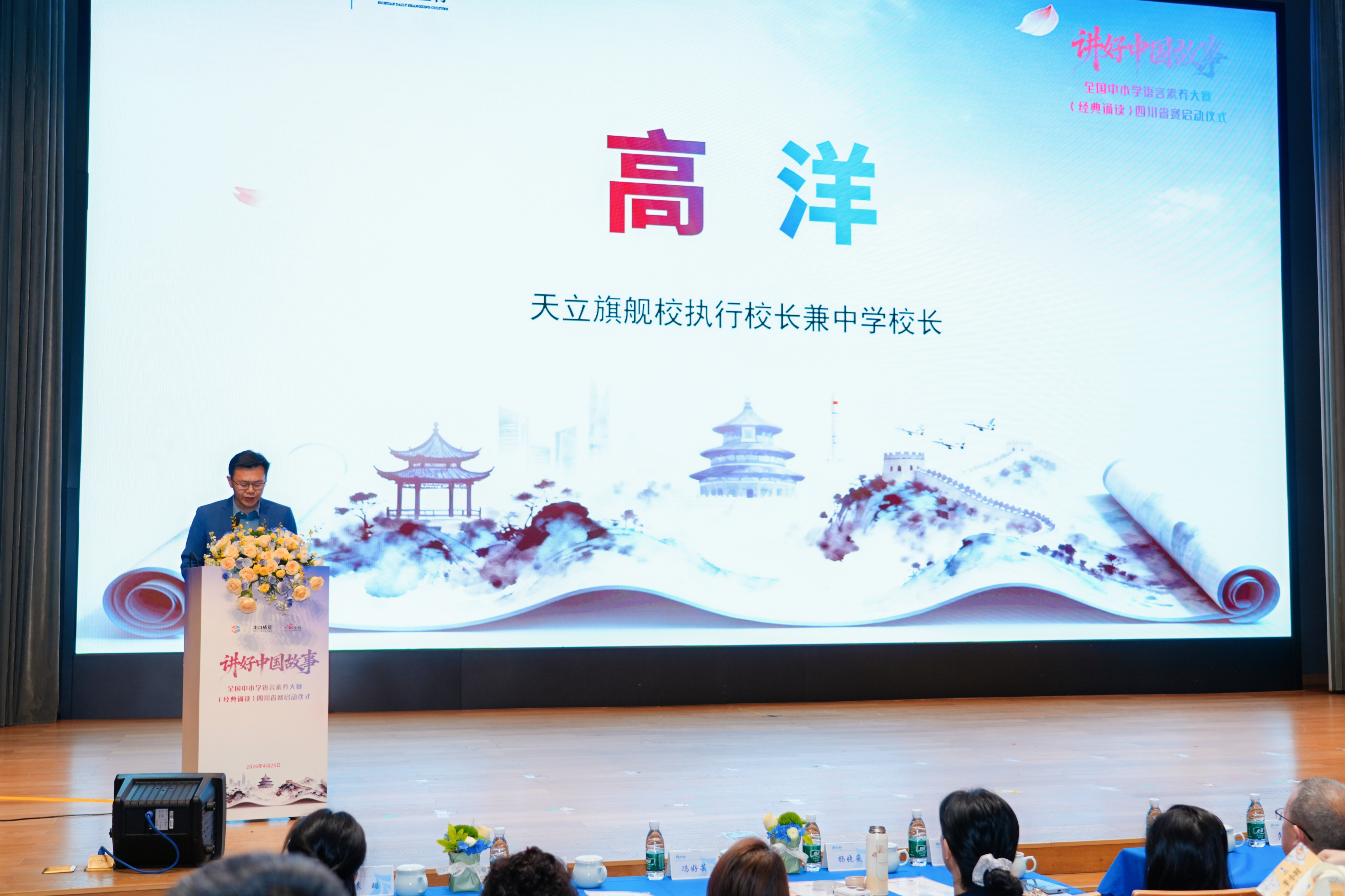 天立旗舰校执行校长兼中学校长高洋则从立德树人的角度出发,将大赛视为厚植家国情怀的育人实践。他认为,讲好中国故事,是让青年一代在诵读中读懂中国、热爱中国。通过经典篇目吟诵,让青少年在抑扬顿挫间建立起顶天立地的民族自豪感。